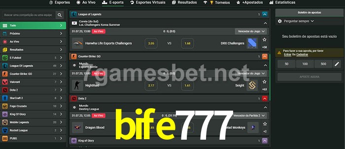 O bife777 oferece uma grande seleção de opções de apostas em e-sports com probabilidades competitivas